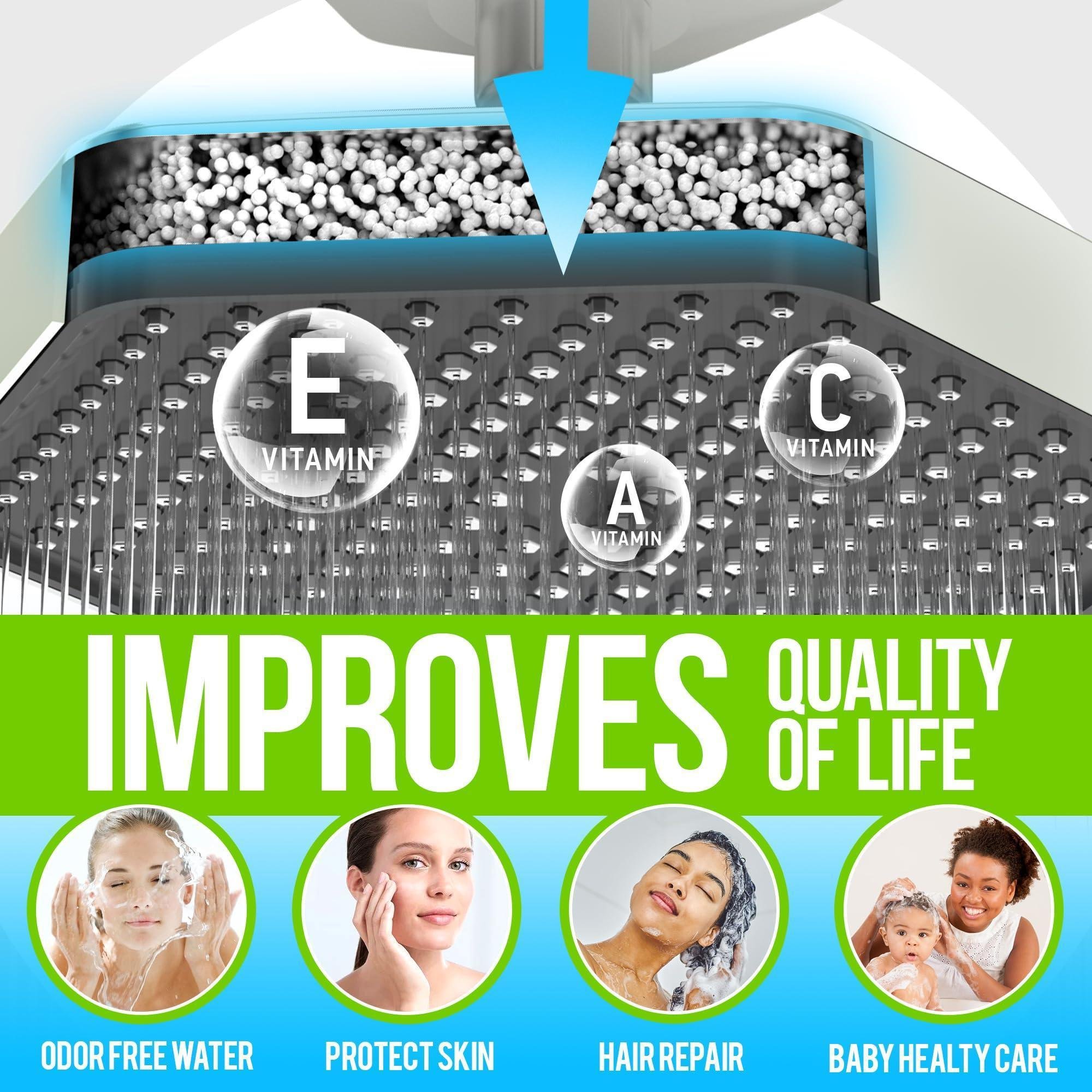 2.Built-In Shower Purification: Convenience meets efficacy with our shower water filter and built-in vitamin C, E, and A cartridge. Enjoy a high-pressure shower with effortless benefits.